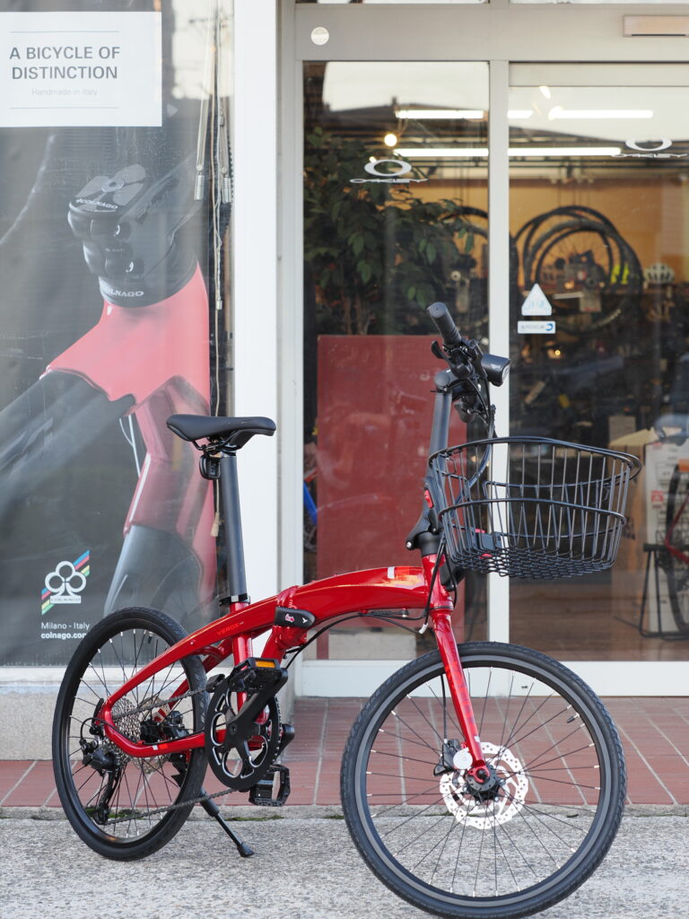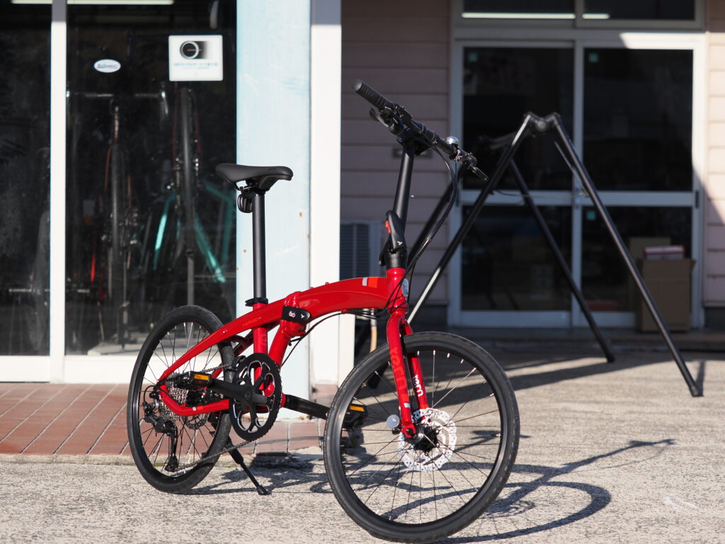 真っ赤な折り畳み自転車です。